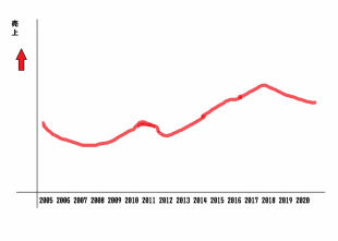 しかしながら、2017年2018年と売上が下がり始めました。対前年85%位で2年連続。。。