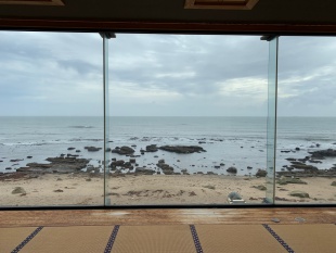 ラウンジからもお食事処からもお風呂からも露天風呂からも全部海が見えます・。