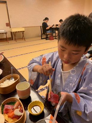 子供たちが嬉しそうにお寿司をつくり、たこ焼きをくるくるしながら頬張る様は親としてみていて幸せでした。亀山温泉ホテルのお子様料理に足りないものはこれだなって思いました。