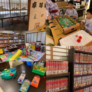 漫画本やおもちゃ、ボードゲームや、卓球台など