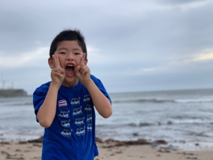 翌朝は5時から起きて海に遊びに行くと長男全開モード