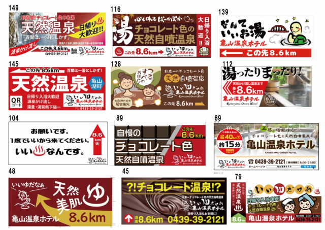 約1か月ほど前に 野立て看板のデザインを クラウドワークスというアウトソーシングサイトで募集を掛けまして、全部で150を超えるデザインが集まりました。