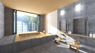 完成したばかりの湖畔が見える貸切半露天風呂で愉しむ足湯体験