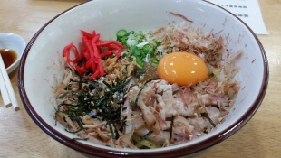 これに君津の名品卵を落として混ぜて食べます。