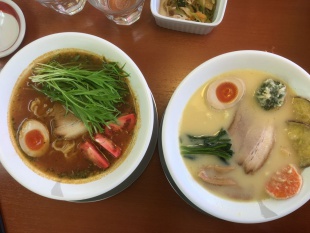 左がトマトラーメン 右がベジ白湯ラーメン
