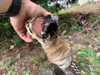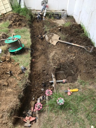 地中に埋められている水道管を掘り起こして、漏水個所を切断