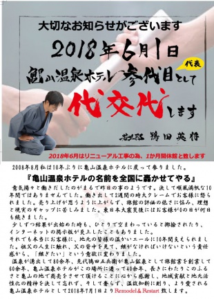 それこそ この法人格を持った亀山温泉ホテルの代表権を持った責任者であるという自覚に繋がります。