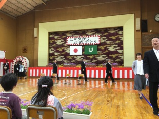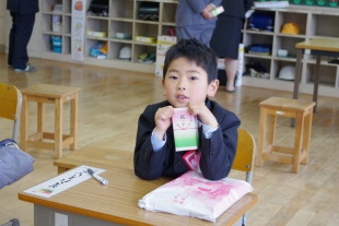4名の入学式にしては大きな大きな体育館で、練習したお返事も4人とも大きな声で名前を呼ばれて、大きな返事をしていました。もうこの大きな返事こそ子供たちが地域の宝物であることそのもの。