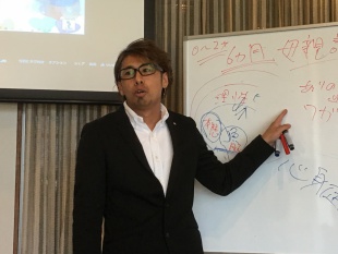 色々な話とたとえを折り混ぜながら、身振り手振り、そしてホワイトボードを駆使してセミナーをやり遂げた