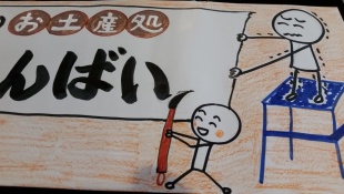 HPにたくさん大うちわを持ったお客様の写真がUPしてあるから、同じように撮ってくださいね