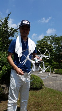 フロントにいる若手は 4名 オリジナルTシャツは エンジ色