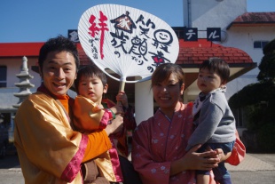 HPにたくさん大うちわを持ったお客様の写真がUPしてあるから、同じように撮ってくださいね