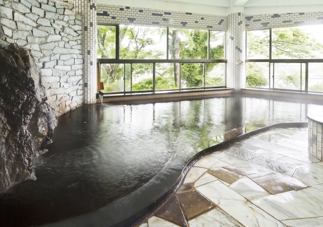 亀山温泉ホテルの看板であるチョコレート色の自家源泉は、ダム建設で高台移転したあとに再採掘した同館の宝だ。取材後、とろとろの珈琲に浸かっているかのような黒湯を楽しませてもらった。