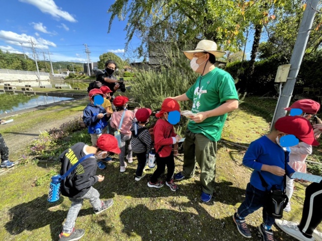 当館の自然体験担当「ミドリマン」が、ちびっこ達を亀山湖周辺の森にご案内。