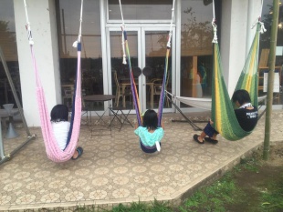 中庭テラスにハンモックを4つ設置しました