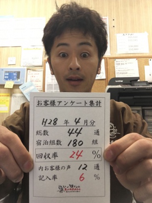 ってことで 平成28年4月の1か月間でお客様から頂戴したアンケートは