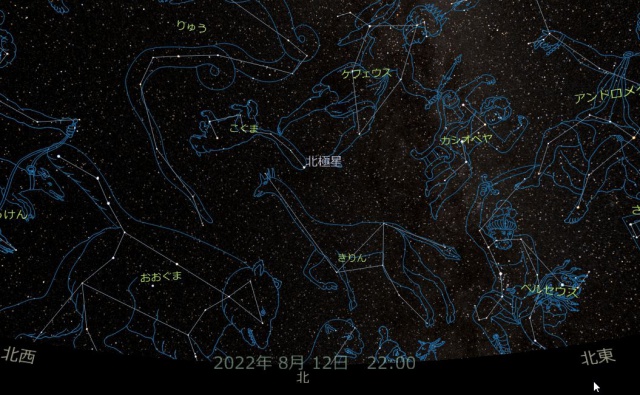 放射点(流れ星が飛んでくる方向)は、名前の通りペルセウス座で、当館から見ると亀山ダムの方向になります。