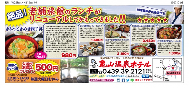 亀山温泉ホテルランチリニューアル情報をのせさせて頂きました。