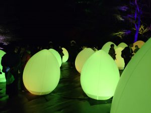 ちょうどプロデューサーの井上さんがいらして、立ち話が出来たのですが、ウメノキゴケ(地衣類)に紫外線を当てて発光させるアートがあり、そこに悠久の歴史を表現しているというのがありました。