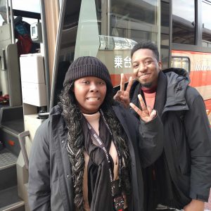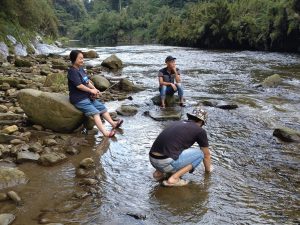 こちらは近隣のキャンプ場とのコラボ事例、南米からのお客様を里山ガイドにご案内。