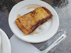 とにかく、時短レシピを考えないといけません、女性チームはバターたっぷりの「オムレツ」男性チームは「フレンチトースト」を作りました。