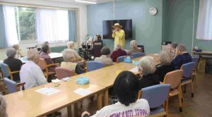 デイサービスは、日によって利用者さんが違うので、前回とは全く違った利用者さんの前で演奏です。