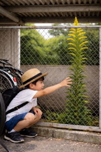 私が小1の時でした、近くの駐輪場にフェンスがあり、その向こうに立派なセイタカアワダチソウがありました。