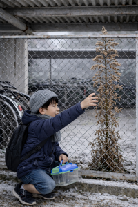 「これは立派な棒が作れる!!」と思った私は、そのセイタカアワダチソウを欲しがるのですが、フェンス越しで、どうしてもゲットできません。