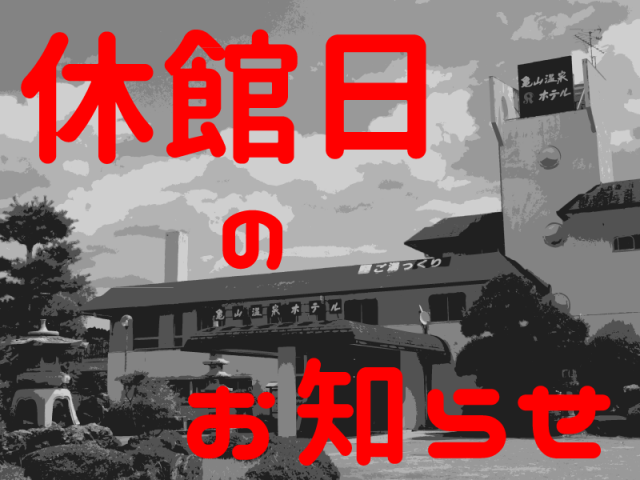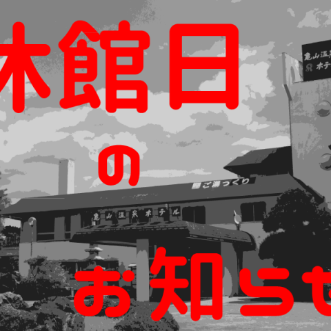 いつもご利用いただき誠にありがとうございます。 当館、大浴場のボイラー不調、修理のため 誠に勝手ではございますが日帰りのご入浴を 4/16(金)までお休みさせていただきます。 ご来館を予定されていたお客様に...